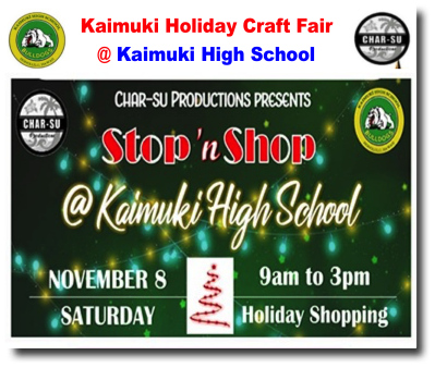 Kaimuki Holiday Craft Fair @ Kaimuki High School - Saturday, November 8, 2025 from 9am to 3pm & Saturday, December 13, 2025 from 9am to 3pm