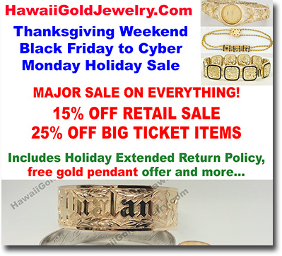 BLACK FRIDAY - CYBER MONDAY 2025 SALE - HAWAIIAN GOLD JEWELRY 15% off retail price sale - 25% off on big ticket items with retail price over $1000.00